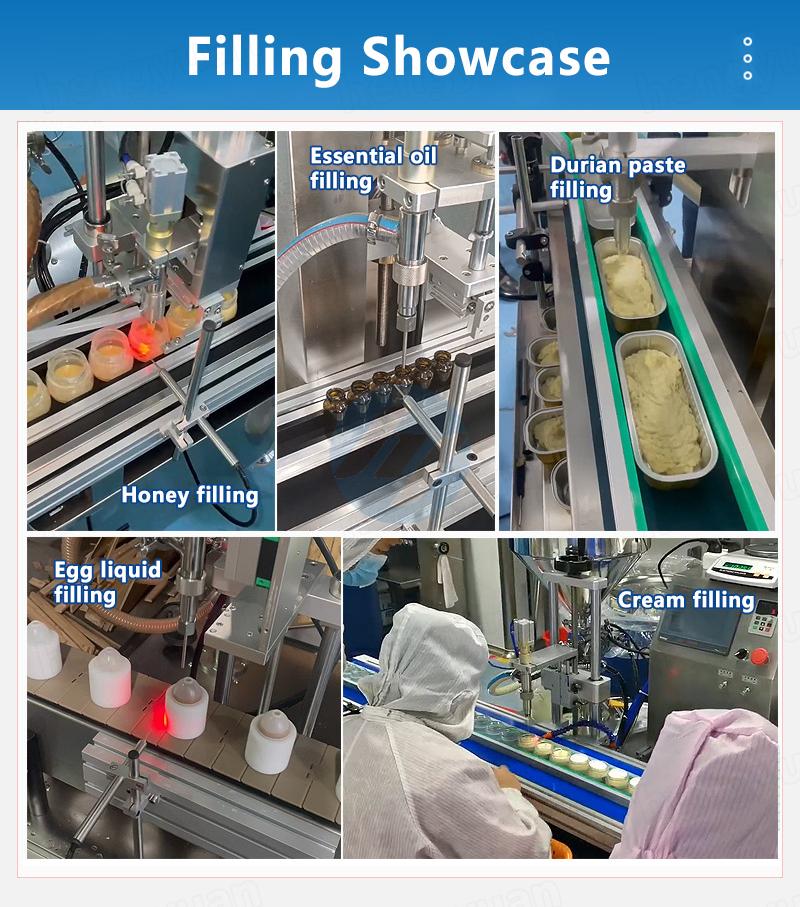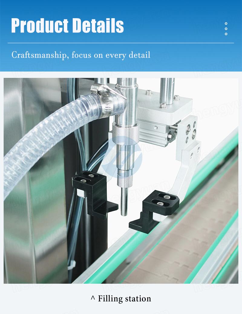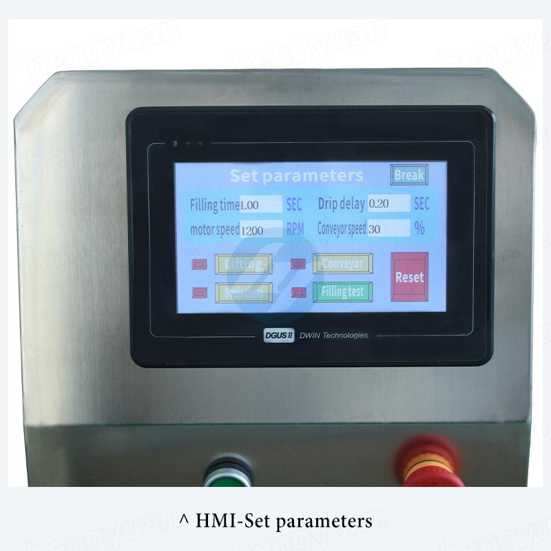 3) This filling machine is a high-tech filling equipment controlled by microcomputer PLC programmable, equip with photo electricity transduction and pneumatic action.