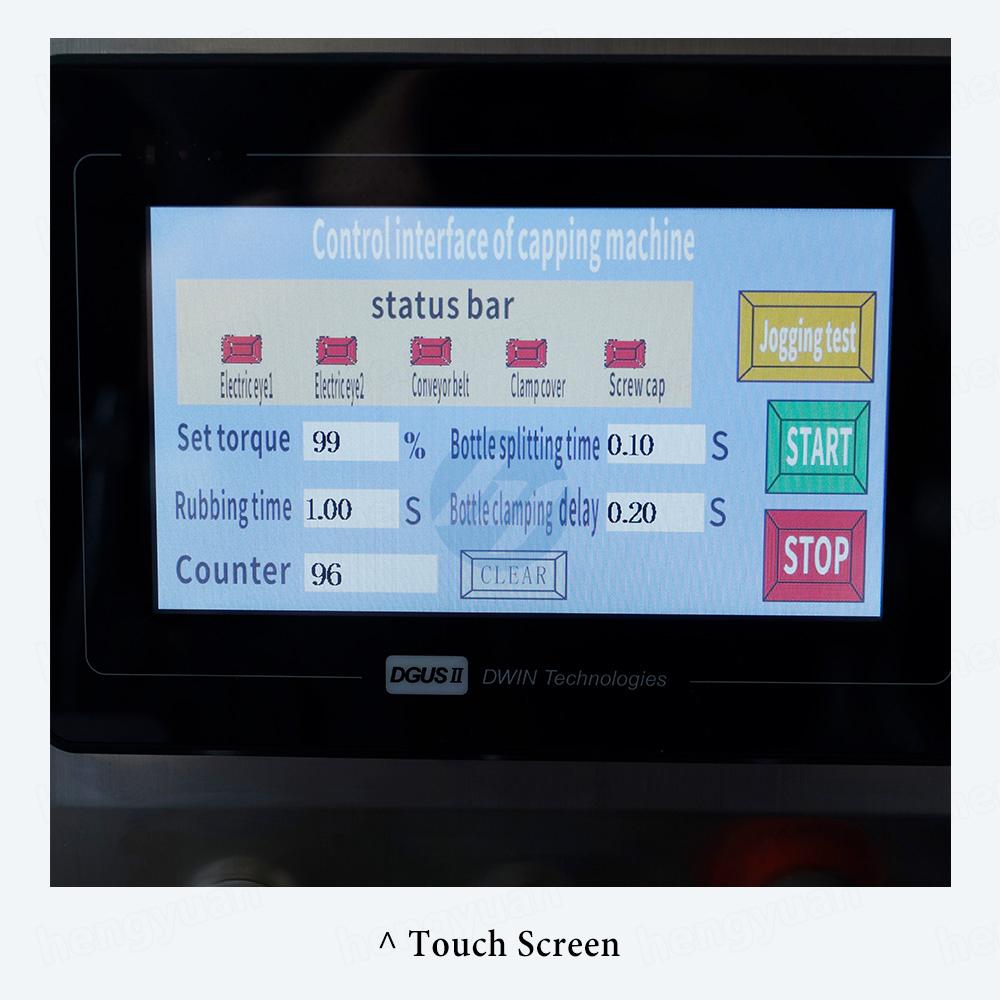This economical four-wheel clamping capping machine is designed with advanced technology to securely grip and screw caps onto containers. Controlled by a PLC system with a touchscreen interface, it offers flexible parameter adjustment and easy operation. It is matched with bottle clamping belts to make bottles stable and easy to control to stop or run. The machine features fully adjustable mechanical components to accommodate bottles of various sizes and shapes, making it suitable for multi‑product lines without requiring additional change parts.A customizable cap sorting system—including options such as vibrating bowls, centrifugal sorters, and elevated lid feeders—can be integrated based on lid type. Ideal for small to medium‑batch production, the machine meets GMP standards and is designed for easy disassembly, cleaning, and maintenance.