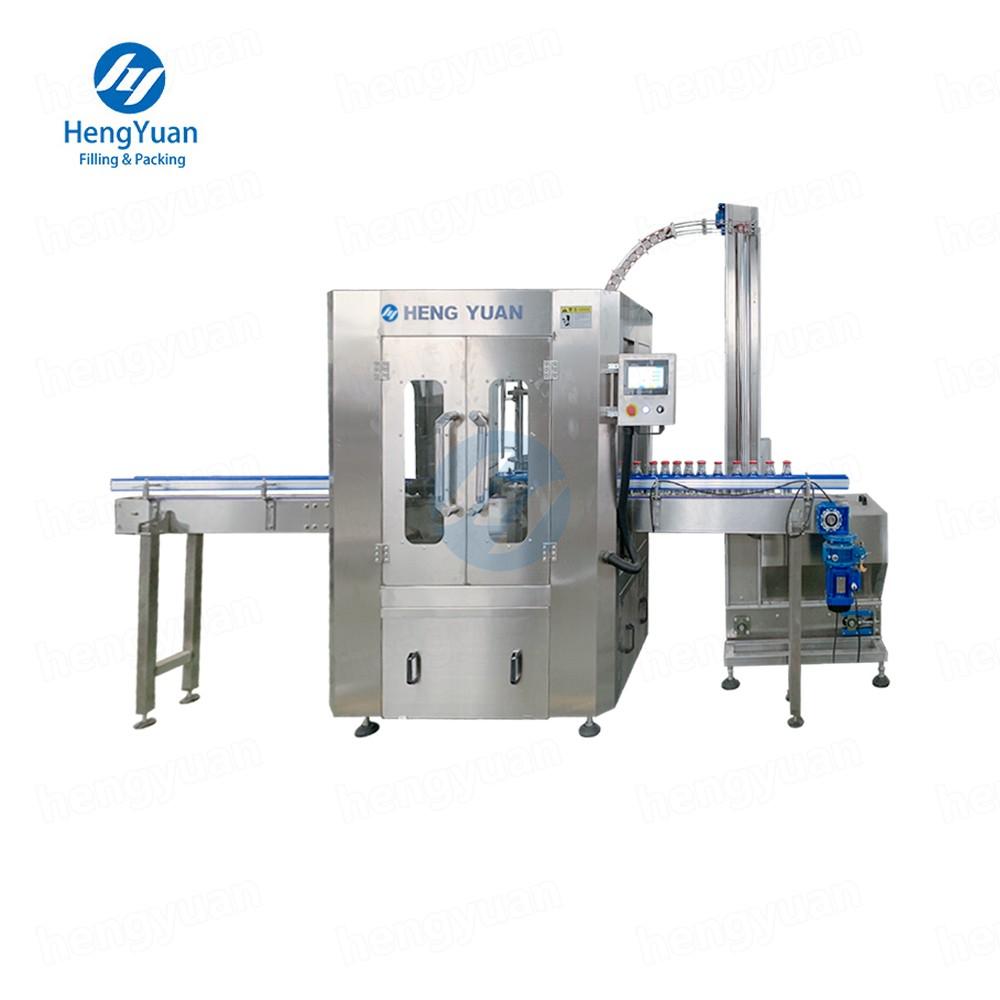 This automatic rotary-type grasping capping machine is designed for the efficient sealing of twist-off tinplate lids. It integrates bottle collection, cap sorting, cap grasping, screw-on capping, and bottle discharge into a single, continuous rotary system. Utilizing a catch-and-position rotary capping mechanism, the machine ensures gentle handling without damaging bottles or caps, delivering high efficiency, excellent sealing quality, stable operation, and wide applicability.The machine is compatible with 3 or 4-groove twist-off tinplate caps and performs automatic rotary sealing on standard glass bottles. Caps are delivered via a scraper plate and securely tightened as bottles rotate through the capping station. Controlled by a PLC system with a touch-screen HMI, the equipment offers intuitive operation and flexible adjustment.