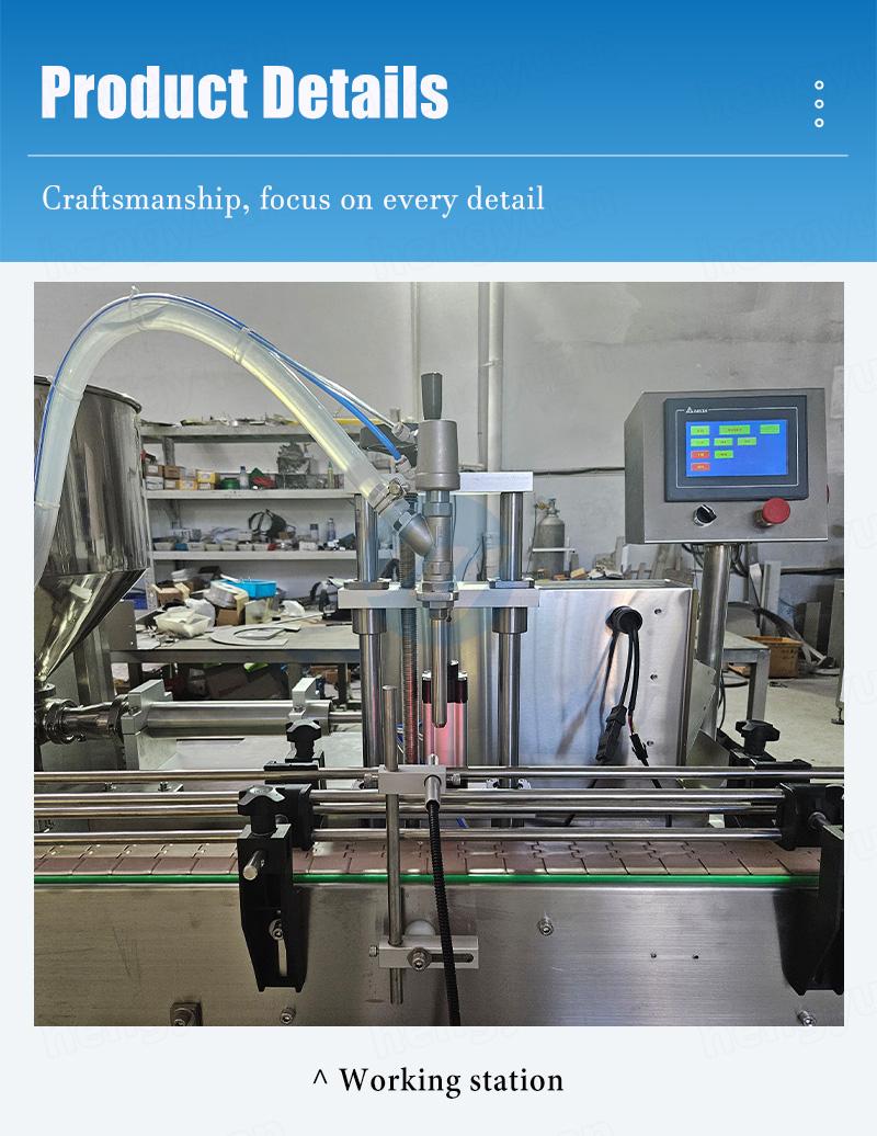 Linear Servo Piston Pump Sauce filling machine is for liquid and viscous liquid in different bottle, cans or jars. The performance of the product reaches the international leading level. PLC control, servo rotor pump dosing, equipped with brand touch screen, smooth operation, no leakage phenomenon, No bottle no filling, can add automatically control feeding the liquid into machine tank, liquid level is controlled at the same height.The parameters are adjustable, simple and convenient, and the filling dose can be accurately calibrated, controlled within 0.5% of the filling dose. The machine is made of high quality stainless steel, beautiful appearance, will not pollute the material, is the best choice of both high viscosity and normal liquid filling. Its hopper can be matched with heating and stirring function, which can be used for Sauce, thick Cream and Paste.