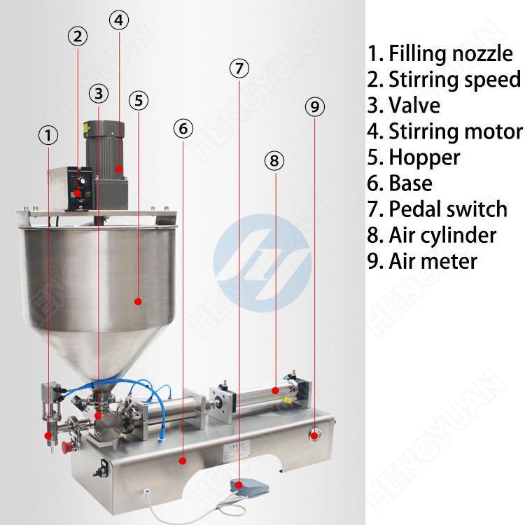 For examples: Beef paste, chilli sauce, soybean paste, pepper paste, sesame seasoning oil, hotpot base, vegetable paste, meat soap, etc. any liquid, half-flowing liquid, viscous cream, with or without granules, semi-automatic desktop sauce dispenser, liquid filler, refill equipment.